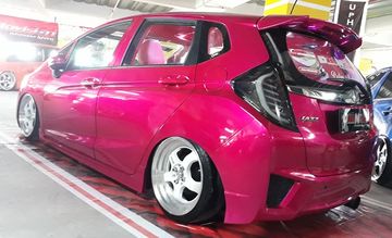 Honda Jazz Tampil Unik Pakai Warna Pink Dan Kaki Kaki Ceper