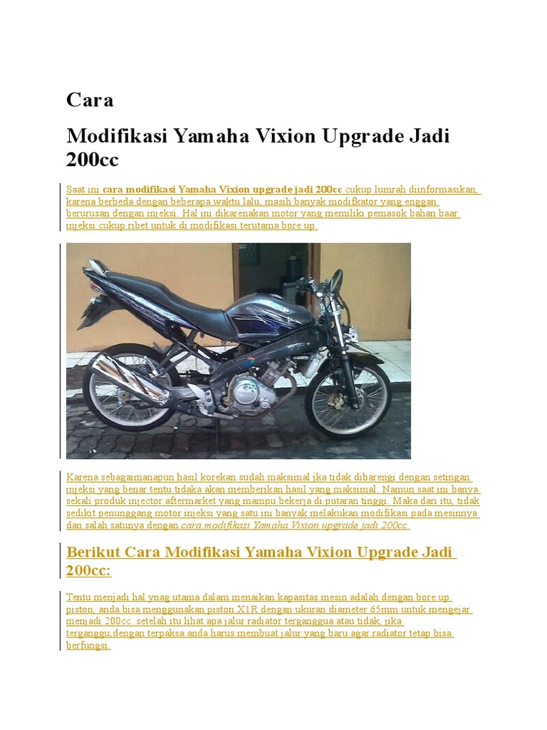 Namun kita harus meningkatkan kecepatan dengan memodifikasinya. Cara modifikasi motor vixion ini bisa diterapkan untuk menambah kecepatan motor vixion ataupun new vixion. Modifikasi vixion jari jari terbaru.